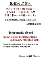 長期休館のお知らせ 令和7年10月21日(火)~令和8年1月8日(木)
