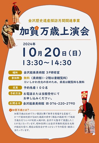 トップページ > イベント情報 > 【加賀万歳上演会】のお知らせ(2024年)