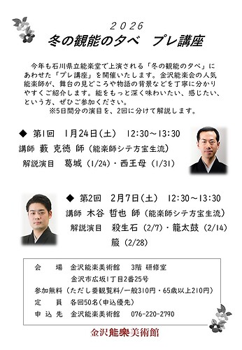 トップページ > イベント情報 > 2026冬の観能の夕べプレ講座 開催のお知らせ